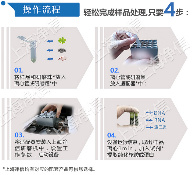 * 可以選用配套的jingxin試劑盒可以快速、高效、穩(wěn)定、批量的提取樣品中DNA/RNA蛋白質(zhì)等